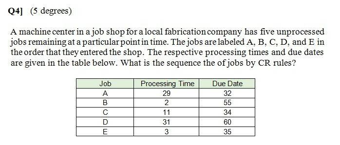 Solved Q4 5 Degrees A Machine Center In A Job Shop For A Chegg Com